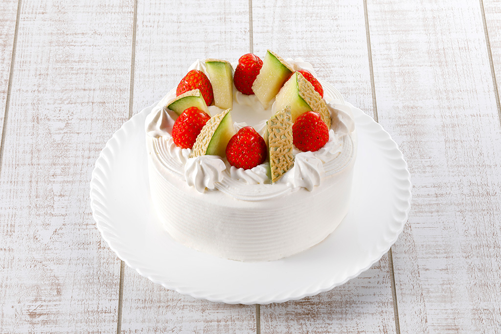 福岡産生クリームを使用し、通常の生クリームデコレーションよりも脂肪分が控えめであっさりとしたクリームで仕上げました。見た目もフルーツがたっぷりと飾ってあるので華やかさではNo.1です。※フルーツは季節に応じて変更になる場合がございます