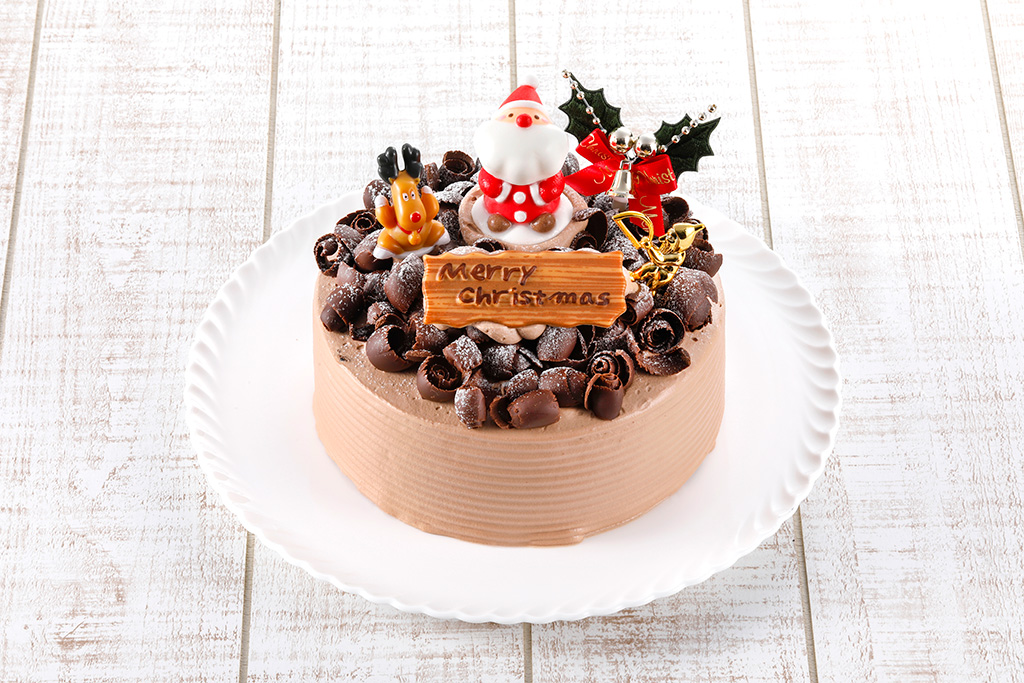 丸太の上で木こりが一所懸命に、楽しそうに仕事している様子と、サンタが忙しそうにプレゼントを運んでいる姿を表現したかわいいケーキ。チョコレートをたっぷり味わえるクリスマスケーキで、ロールの中身にはいちごがたくさん入っていて甘すぎず、お子様にも喜んでいただける味わいに仕上げました。ロールの中身はチョコレートスポンジといちごです。